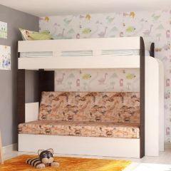 Кровать 2-х ярусная с диваном Карамель 75 (OТТО YELLOW) Бодега светлая