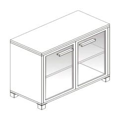 Топ из ЛДСП 44 мм., полки из ЛДСП 16 мм, остальные элементы из ЛДСП 22 мм., кромка ПВХ 2 мм, регулируемые опоры высотой 100 мм. Тонированное стекло в рамке МДФ, цвет серебро.